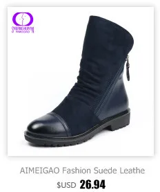 AIMEIGAO Front Zipper Black Ankle Boots For Women Warm Fur Plush Insole Women Boots Low Heel Cool Style Autumn Women Shoes