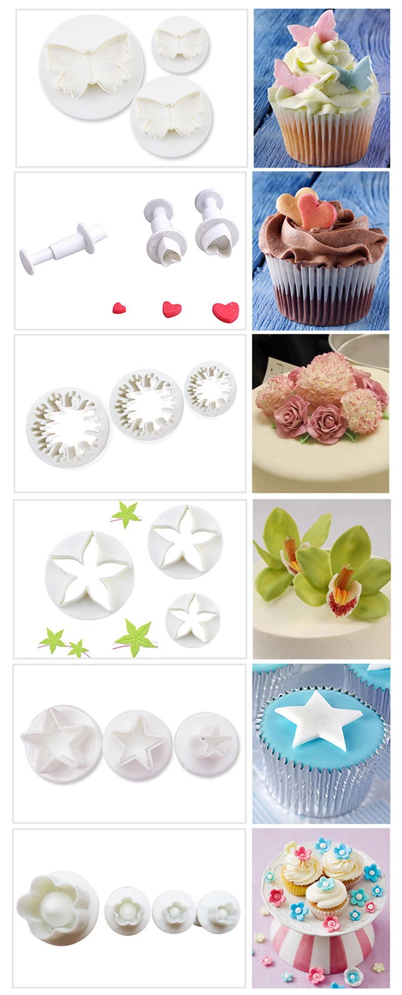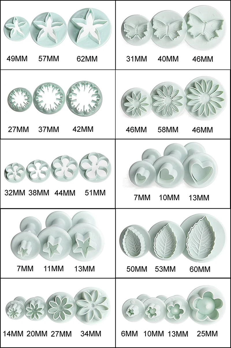33pcs Plastic Fondant Cake Decorating Sugarcraft Plunger Cutter Tools Cookies Mold