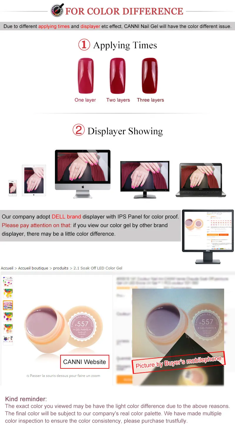 Guangzhou CANNI Nail Art Co., Ltd is a professional MANUFACTURER for nail art products since 2007. Our factory locates in Guangzhou City with over 900 square plant area. We focus on R&D of nail art products with our own brand “CANNI” and “GDCOCO” for main products: soak off UV/LED gel polish, soak off topcoat, soak off non-cleansing topcoat, base gel, builder gel, color UV / LED gel, glitter UV / LED gel, glaze UV / LED gel, pearl UV / LED gel,all above products are certified by SGS & MSDS certificate. CANNI company will insist on “ Good quality as well as competitive price ” principle to develop UV/LED Nail Gel business for customers all over the world.