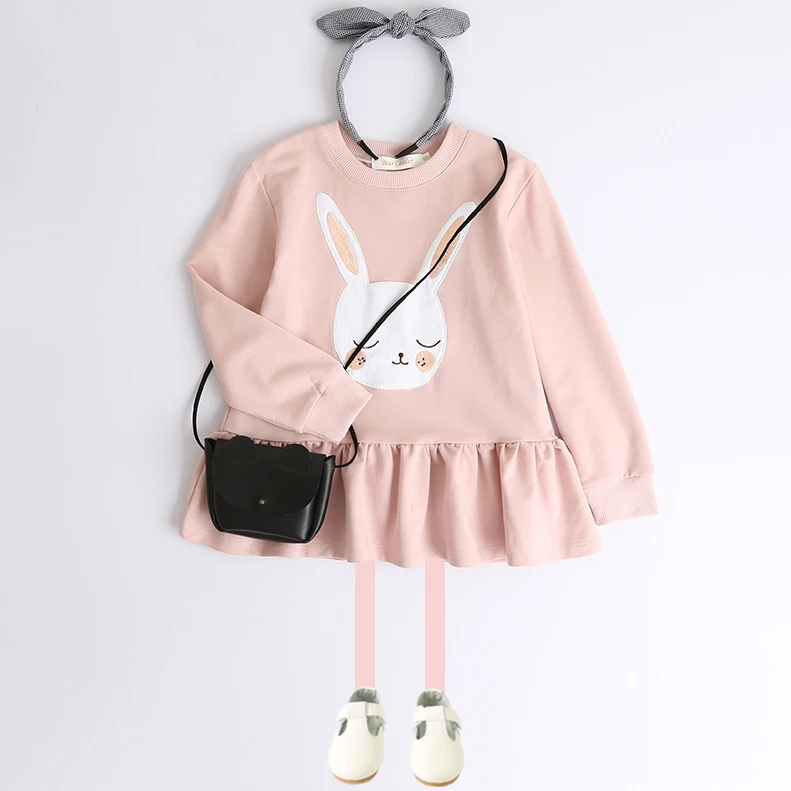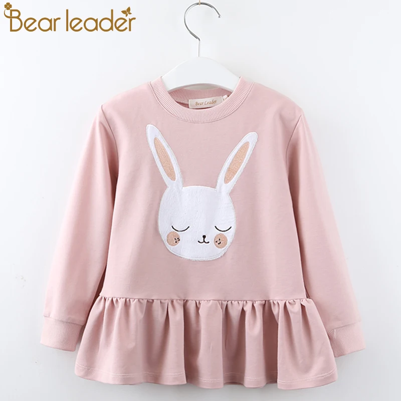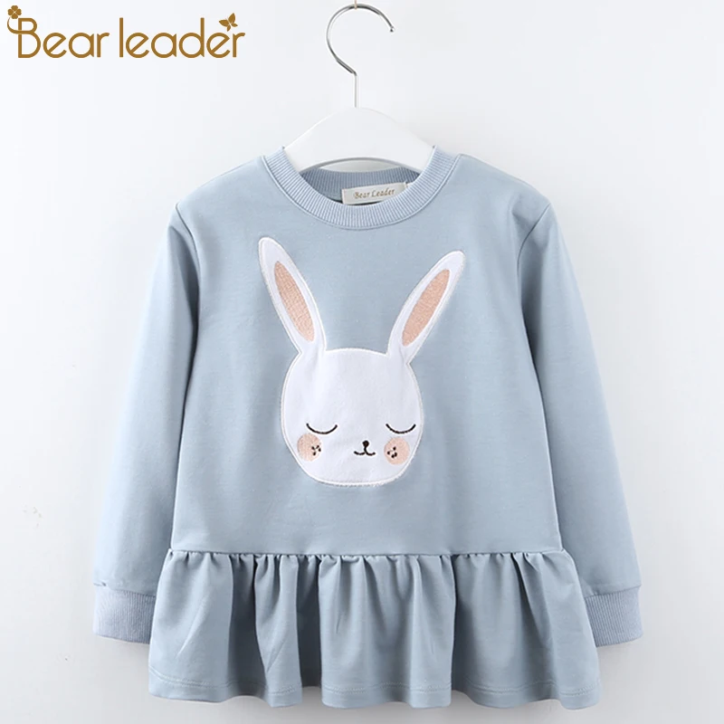 Bear Leader Girls Dress New Brand Baby Girls Blouse Rabbit Ears Hooded Ruched Long Sleeve Children Clothing Dress Girls Clothes