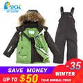 11.11 SP-SHOW -35 degree russia Winter Children's Outwear boy snow suit thick jackets Kids clothing girls ski jacket suit set