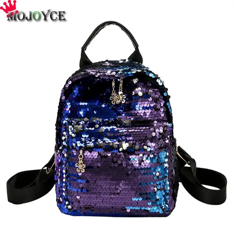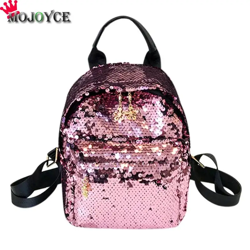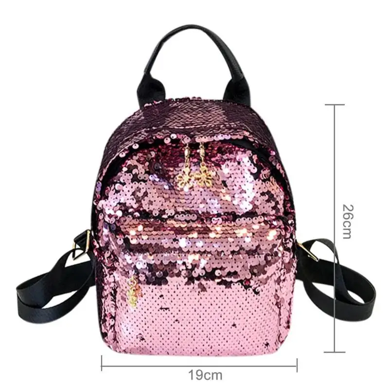 New Fashion Women Sequins PU Leather Backpack Girl Teenage Small Travel Shoulder Schoolbag Casual Student