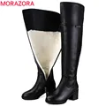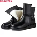 MORAZORA Plus size 35-44 new fashion winter snow boots platform shoes footwear mid calf women boots solid color zipper white