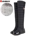 Asumer Hot Sale Shoes Women Boots Solid Slip-On Soft Cute Women Snow Boots Round Toe Flat with Winter Fur Ankle Boots