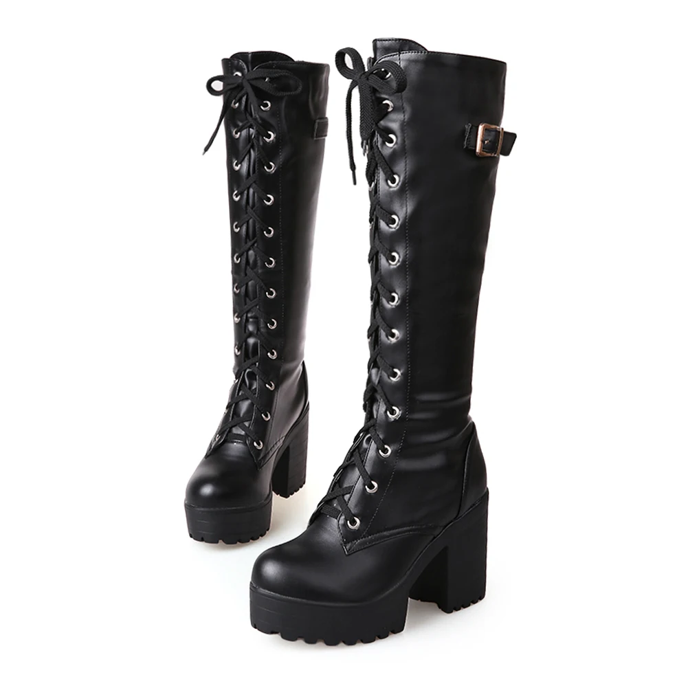 KarinLuna 2018 large sizes 34-43 street style cool high heels Knee-High Boots Woman Platform Winter women Shoes Snow Boot female