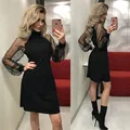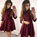 Women Dress Fall 2018 Fashion Solid Vintage Elegant Mini Dress Autumn Bow Causal Christmas Party Dresses Plus Size