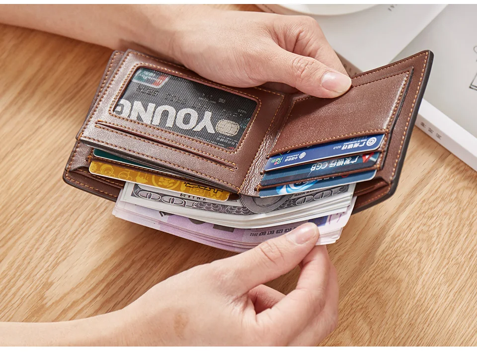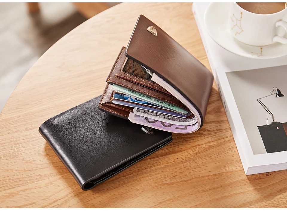 Bostanten New Men Short Wallets Black Brown Bifold Wallet Mens Brand Leather Card Holder Money Cash Wallet Purses Pockets