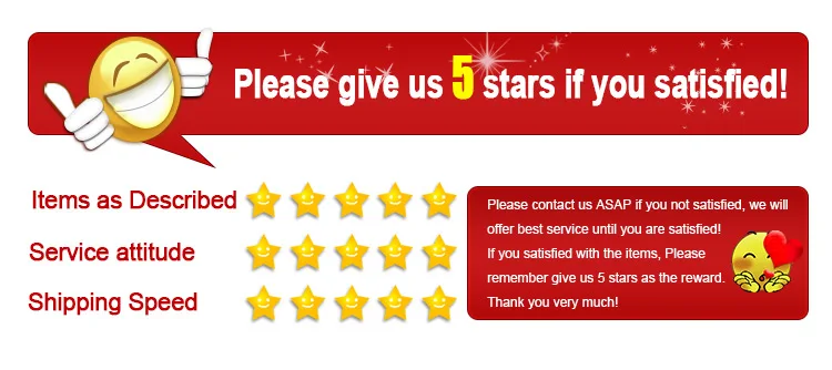 1. If you are satisfied with our items, please give us 5 stars on all of the detail of the seller rating and positive feedback; For our old customers. we will give 5% discount for next order.